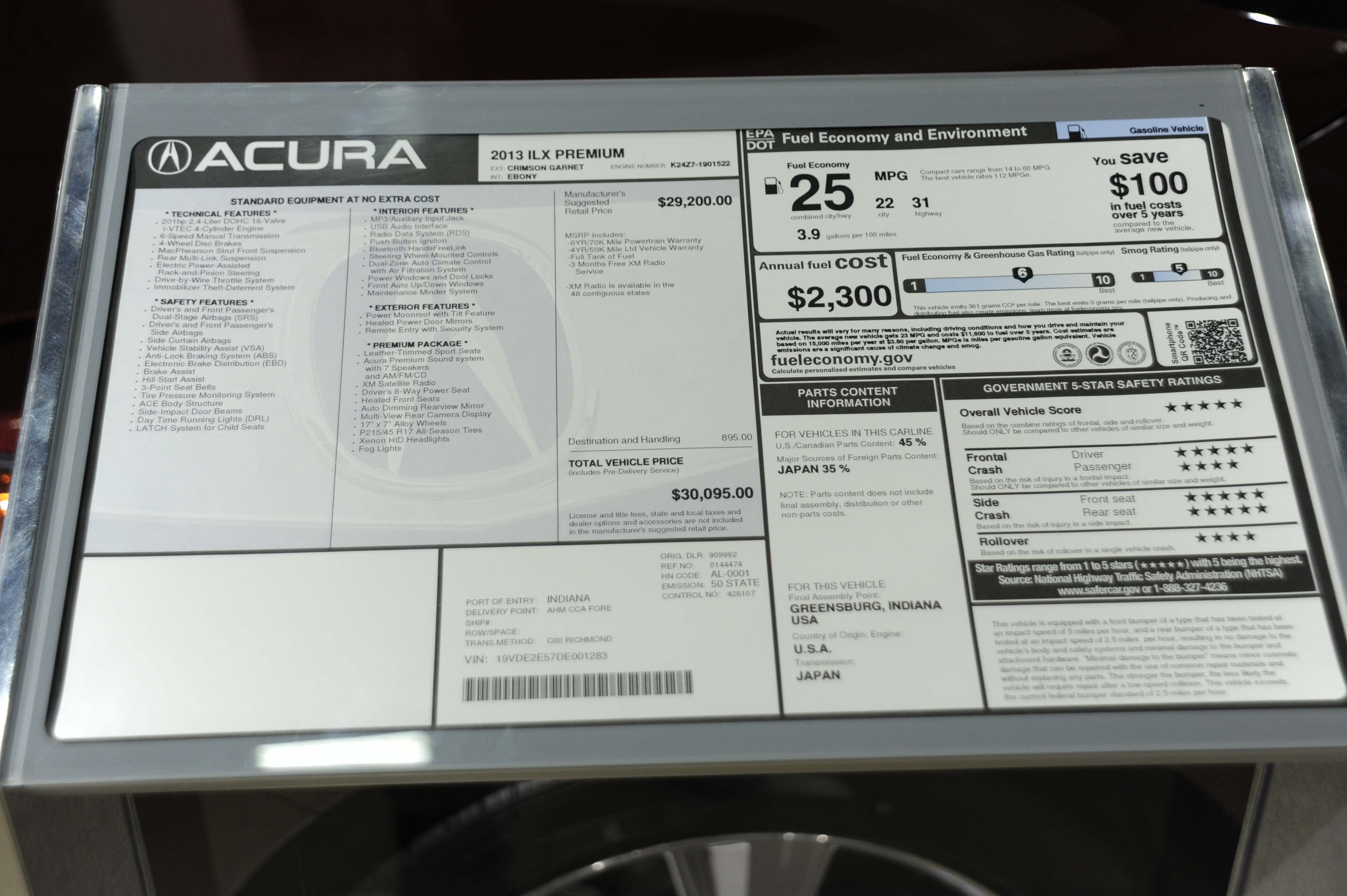 Acura ILX Premium sn-19VDE2E57DE001283 2013