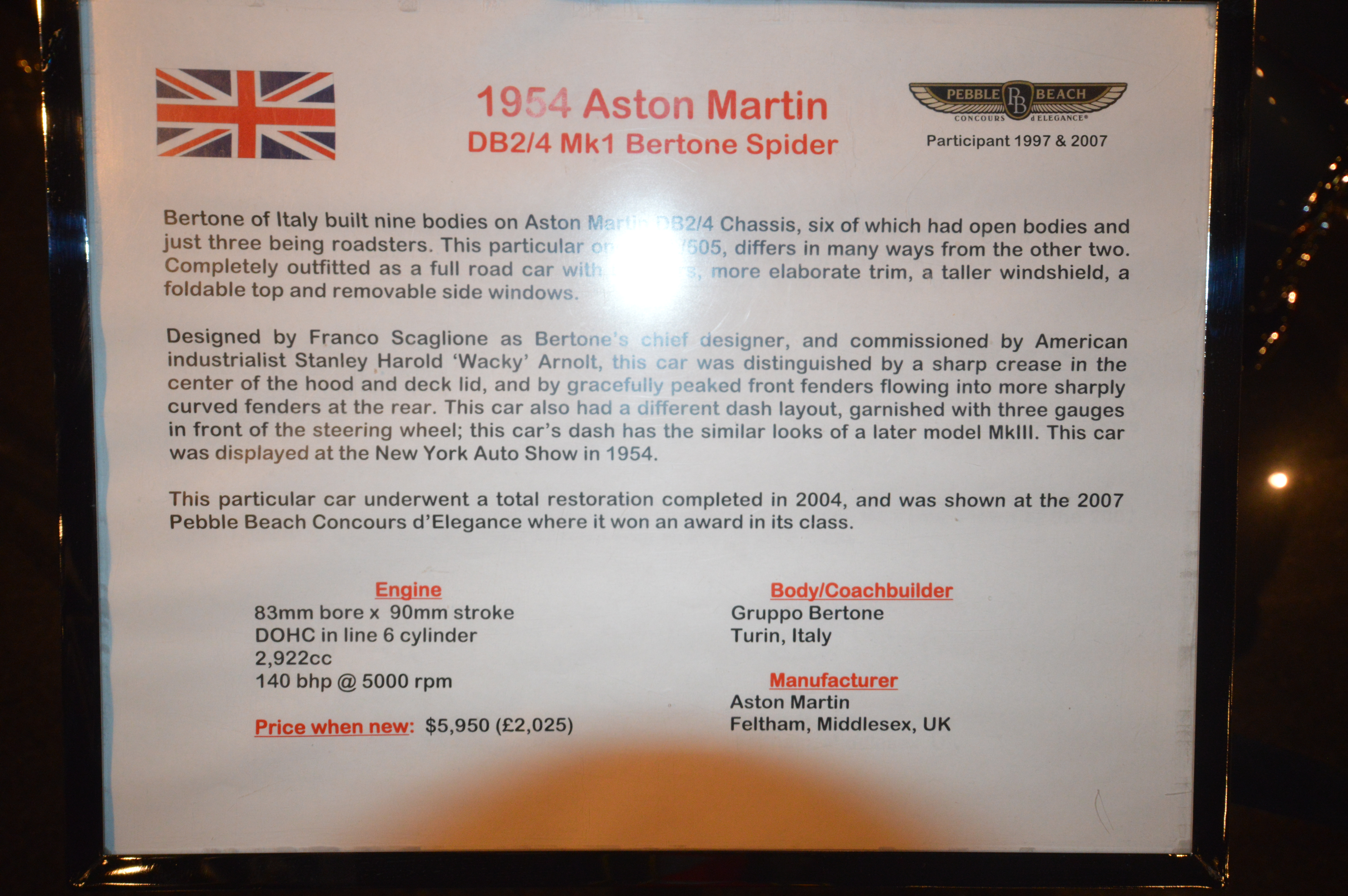 Aston Martin DB2-4 MK1 Bertone Spider 1954