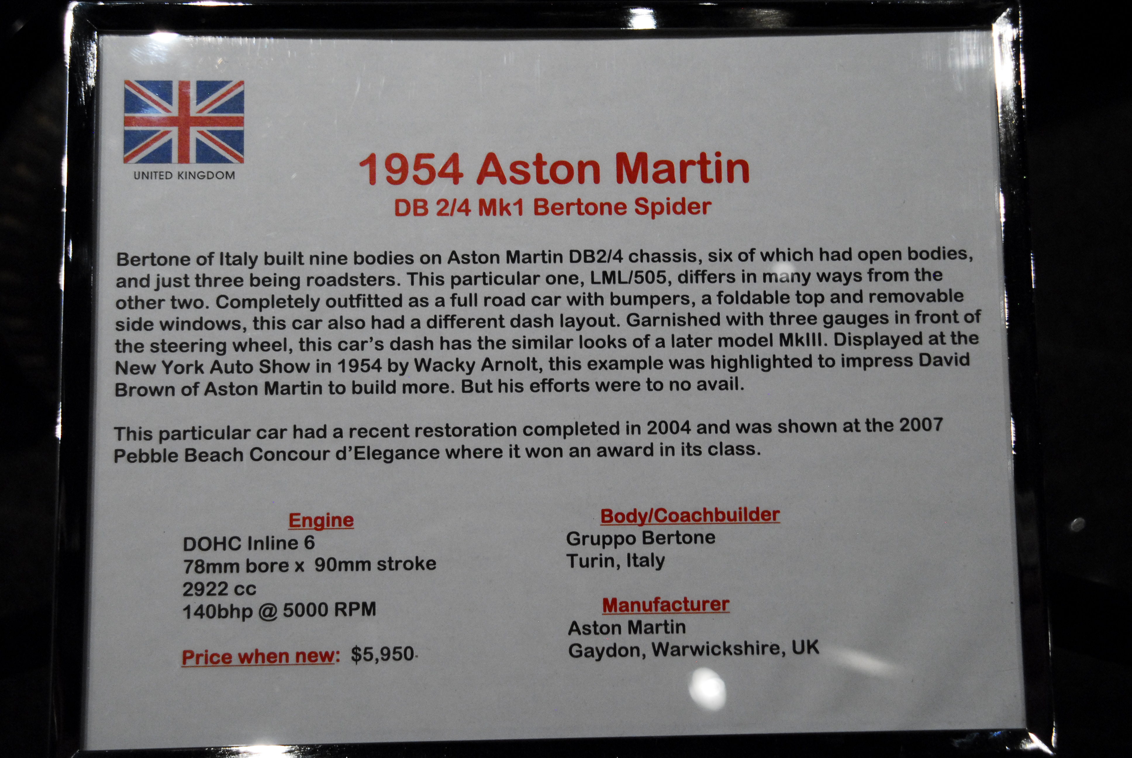 Aston Martin DB2-4 sn-LML505 Bertone 1954