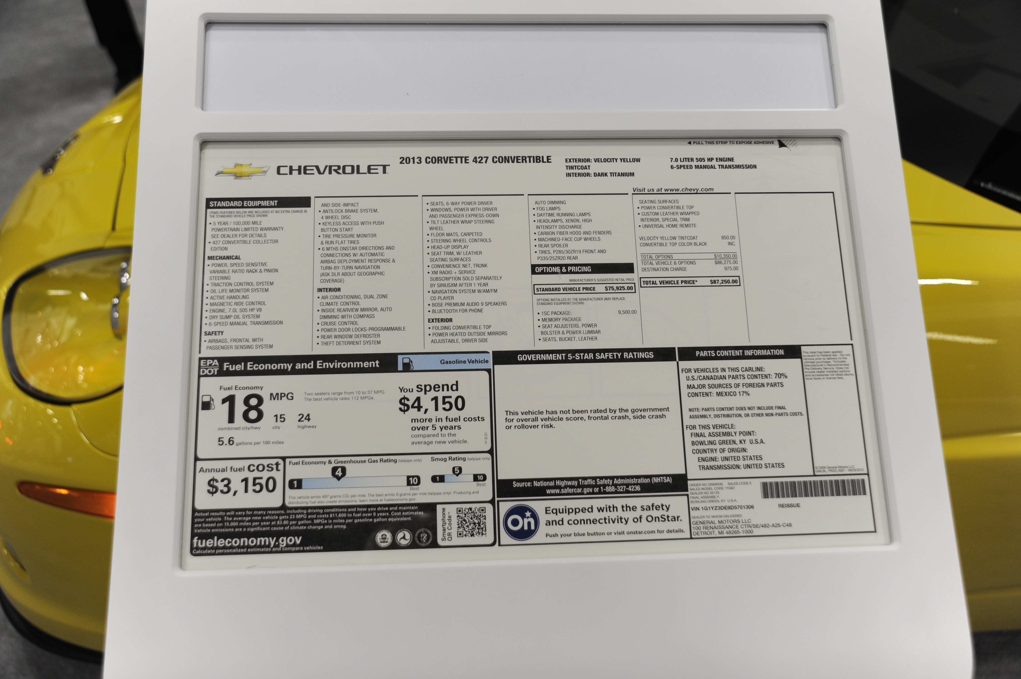 Corvette 217 sn-1G1YZ3DE8D5701306 2013