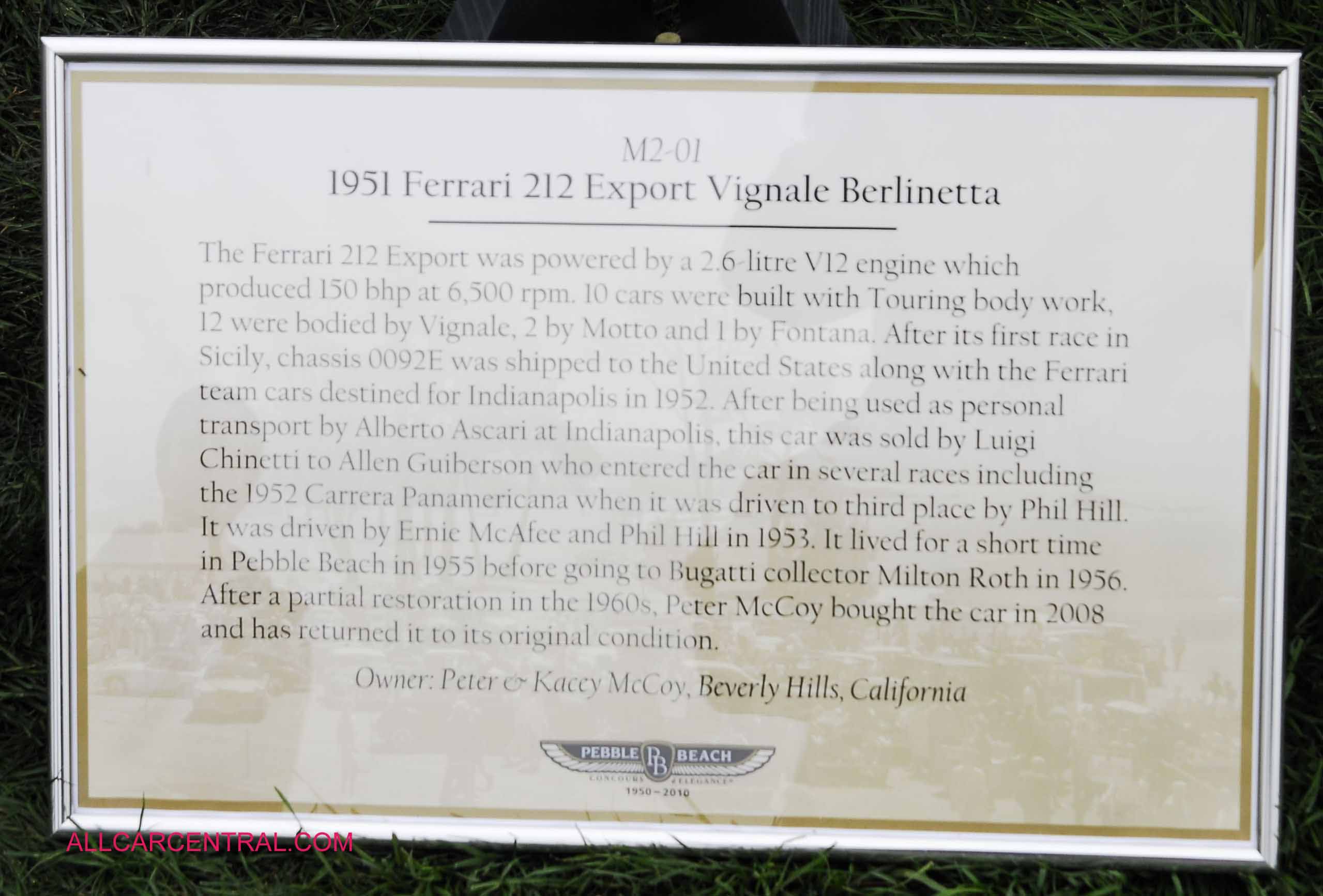 Ferrari 212 Export Vignale Berlinetta 1951 1st Place