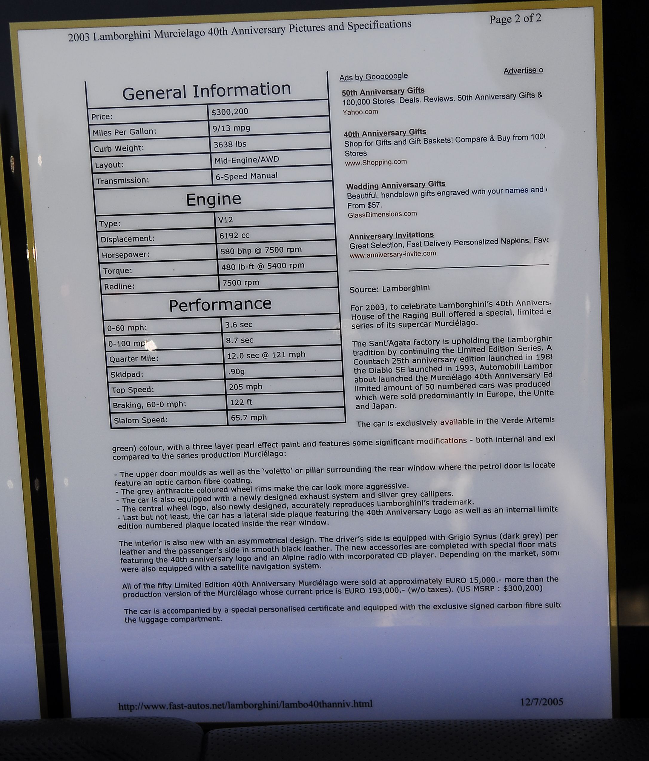 Lamborghini Murcielago 40th Anniversary Ed 2003