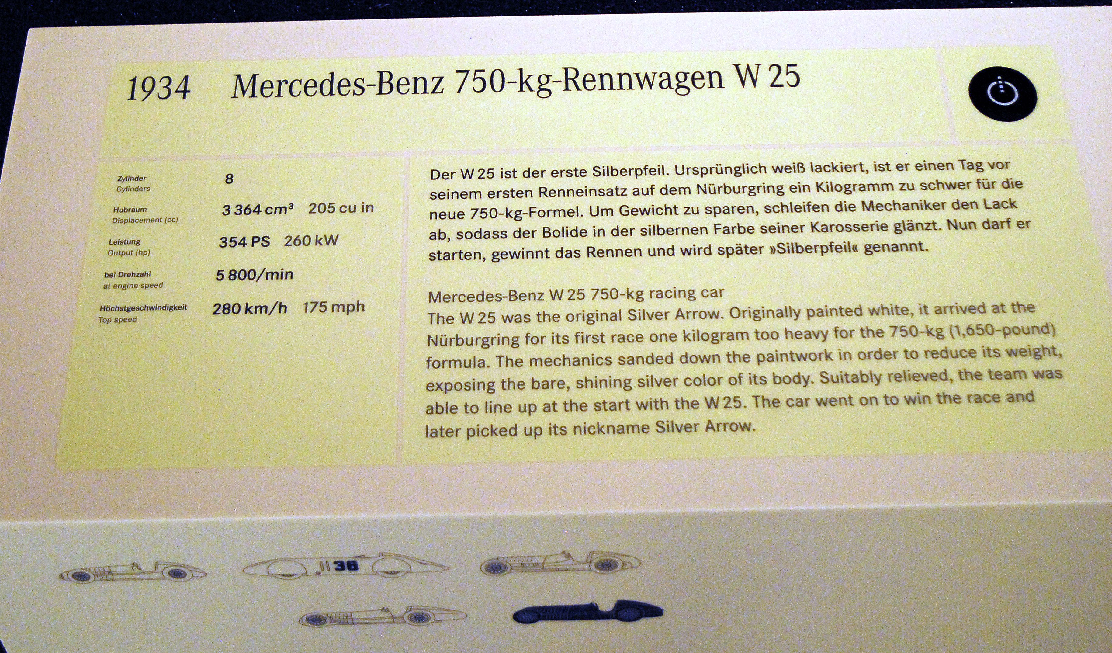 The German racing colours at the time were white, but these cars ran in 'bare' metal. Rumour is that this ploy was to save weight to stay within the 750kg weight limit. The new cars quickly became known as 'Silberpfeil' (Silver Arrows in German), creating a legend that endures to this day.