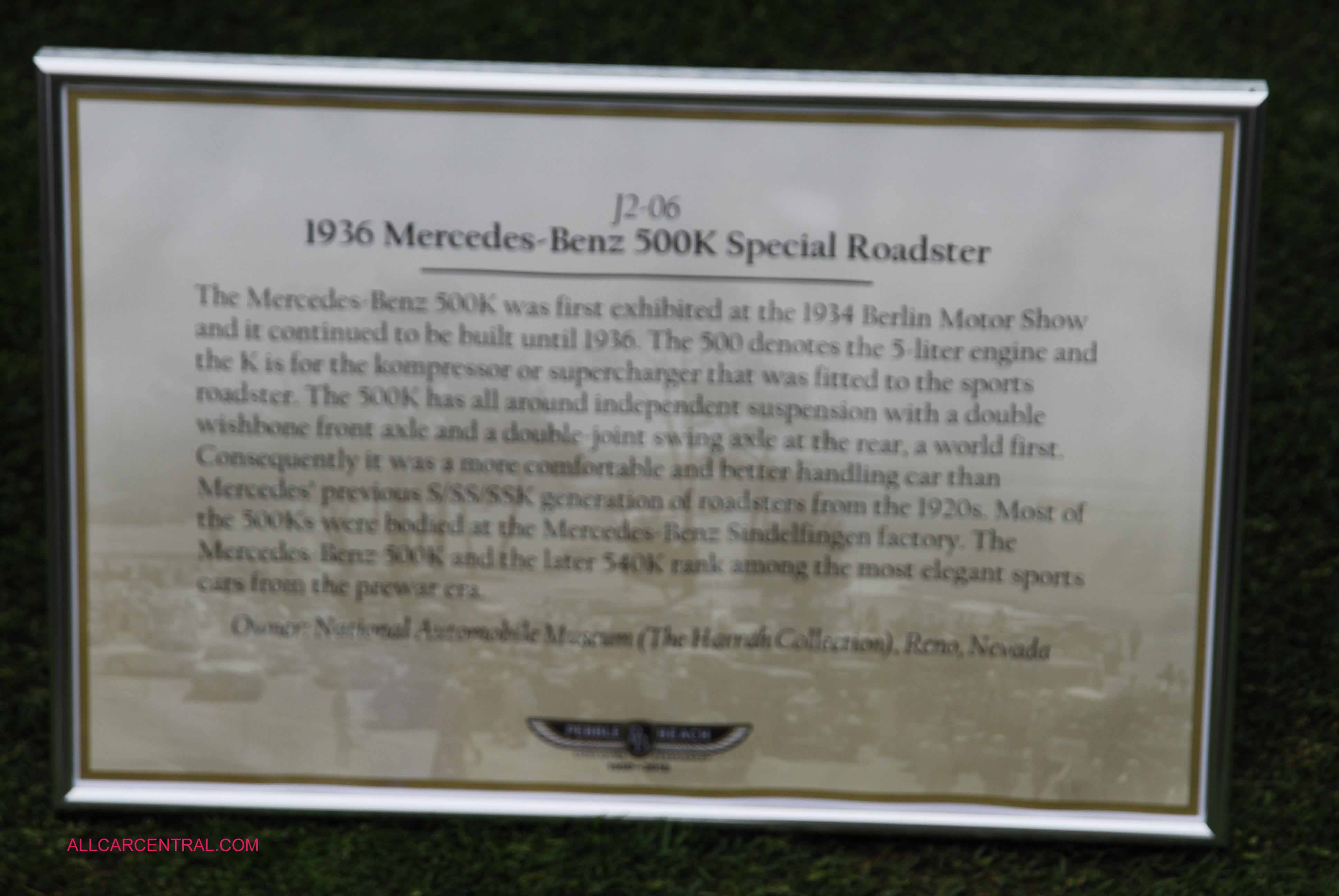 Mercedes-Benz 500K Tourer 1936 Pebble Beach 2015