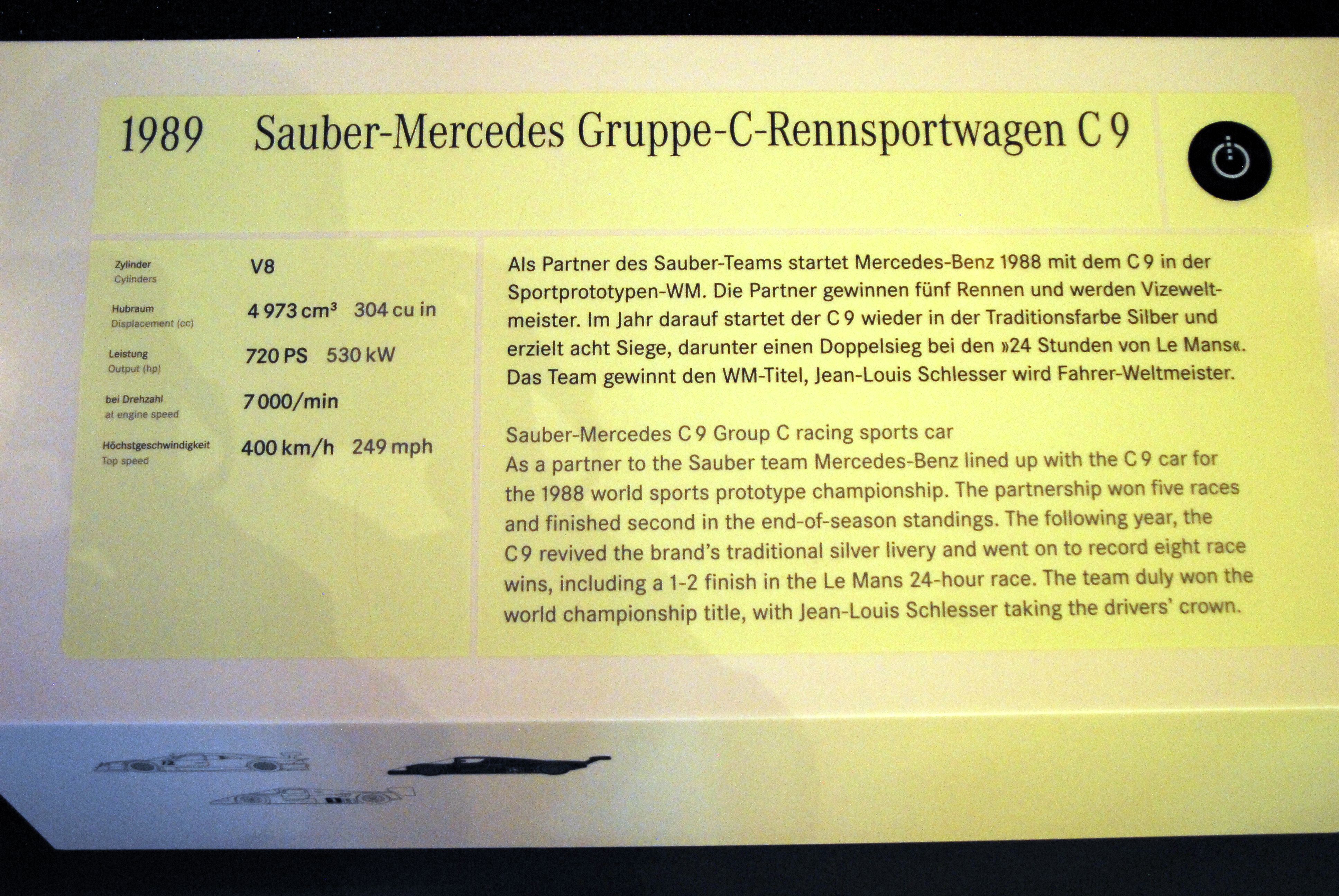 Sauber-Mercedes Gruppe-C-Rennsportwagen C9 1989