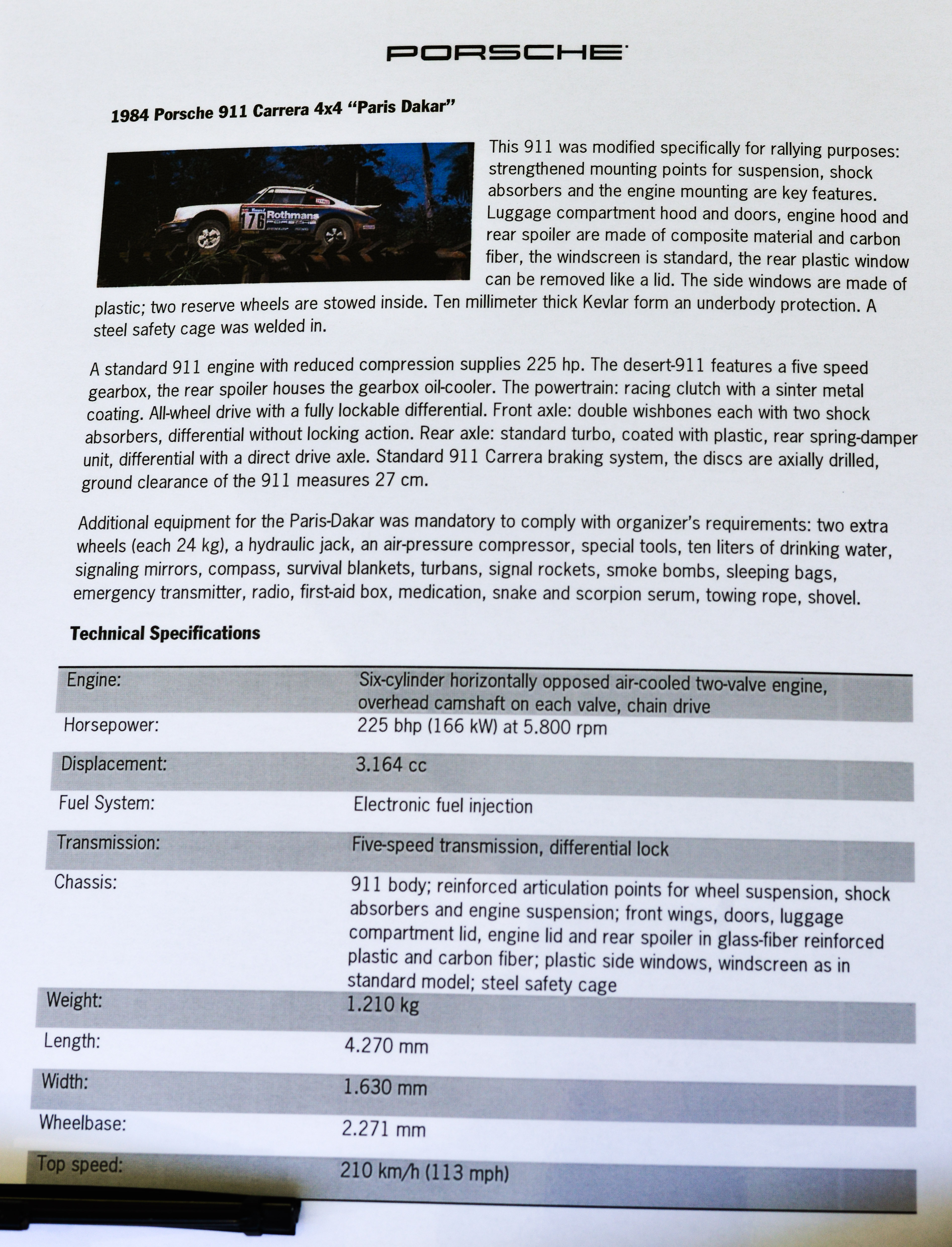 Porsche 911 Carrera 4x4 "Paris Dakar" rally car 1984