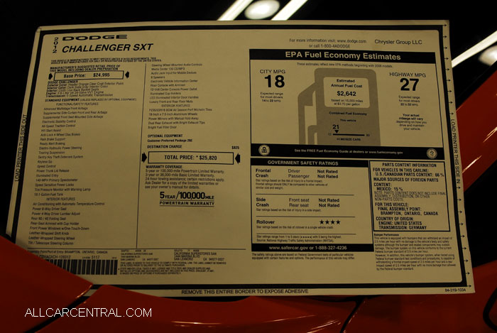 Dodge Challenger SXT sn- 2C3CDYAGXCH128312 2012