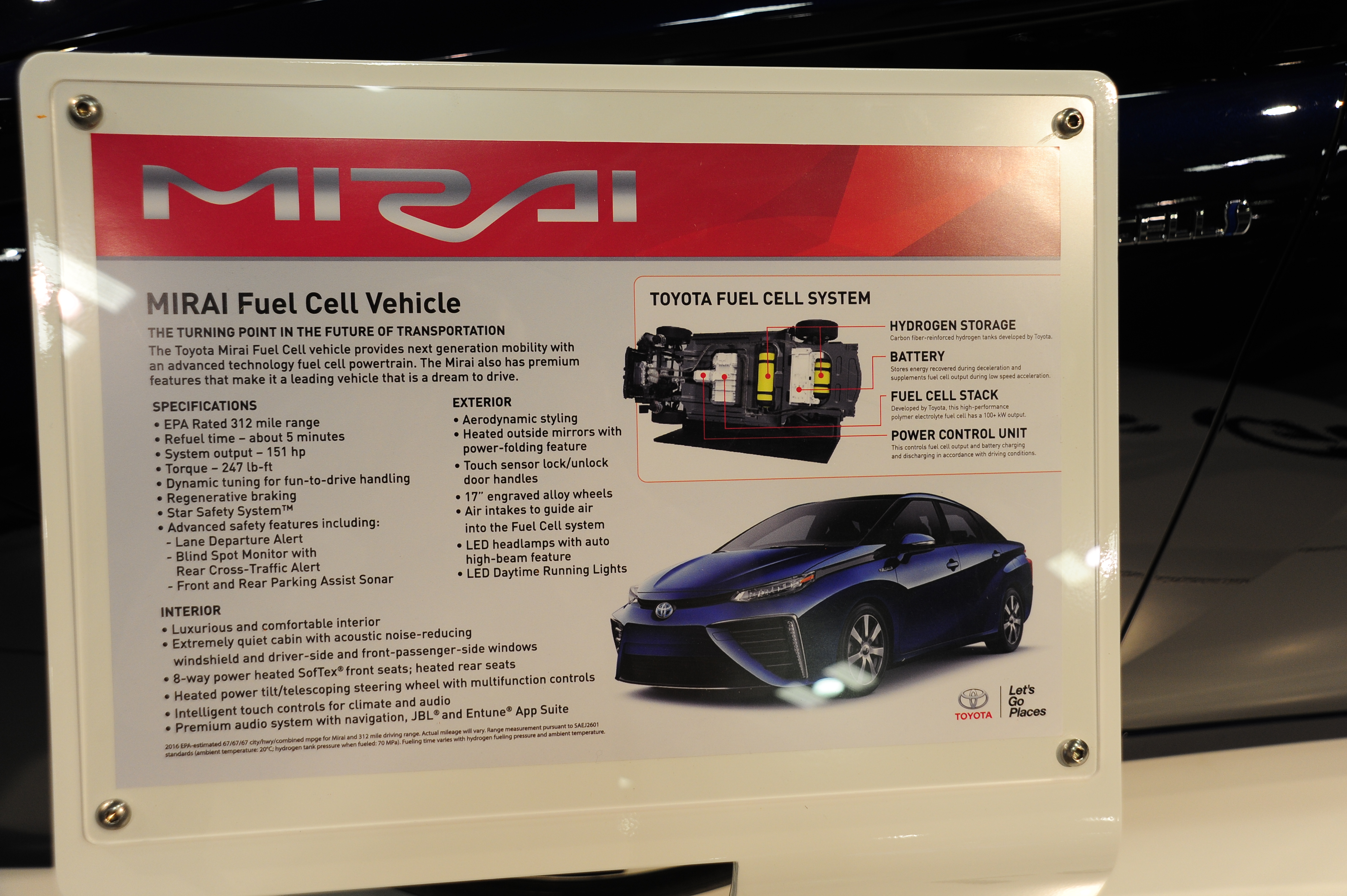 Toyota had an interesting display with its' all Hydrogen fuel cell MIRAI. looking directly into the future and possibly string down the all-electric battery storage plug-in systems.