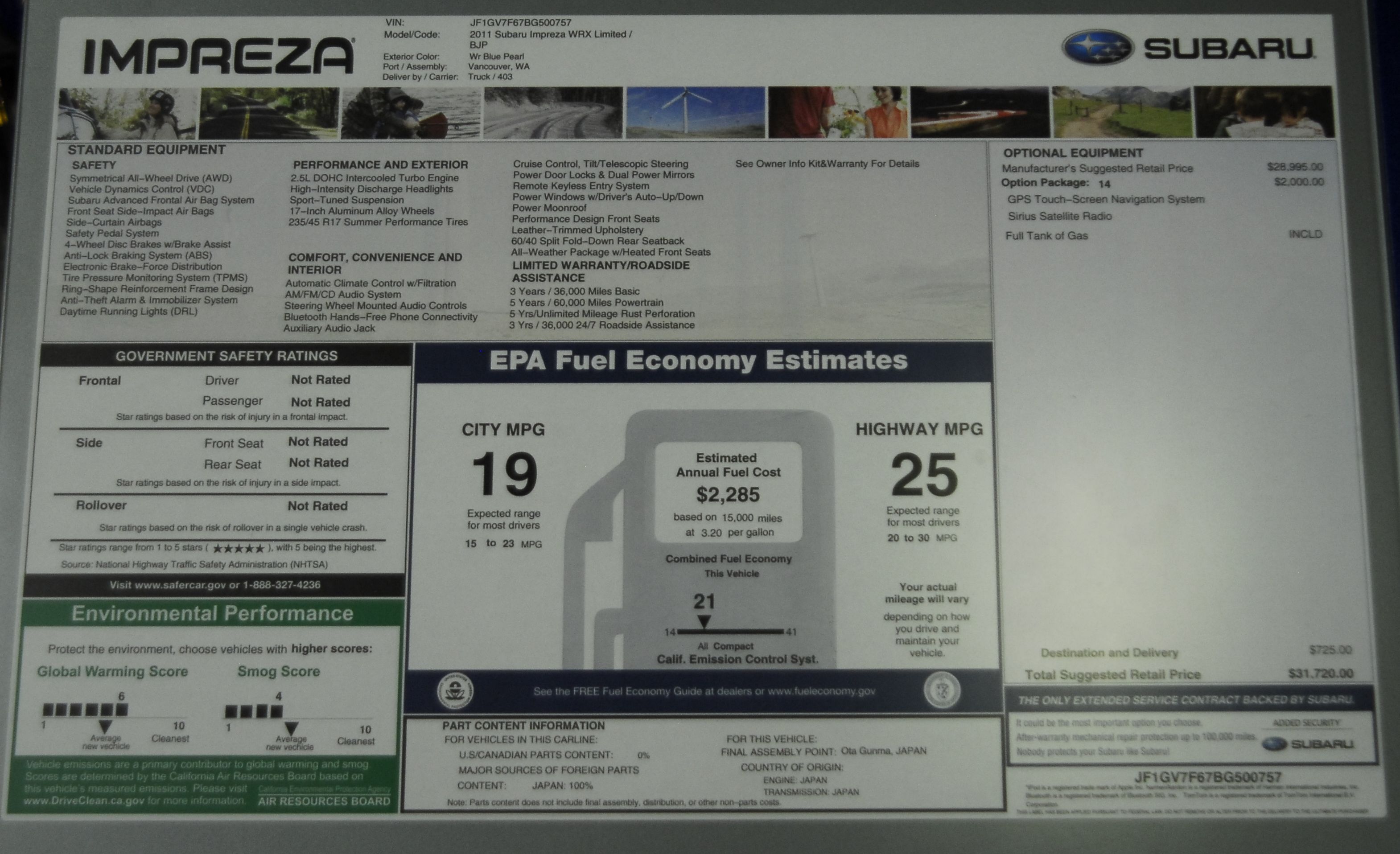 Subaru Impreza WRX Limited sn-JF1GV7F67BG500757 2011