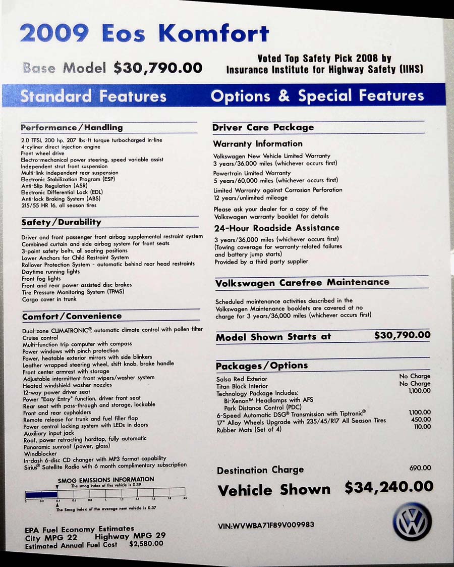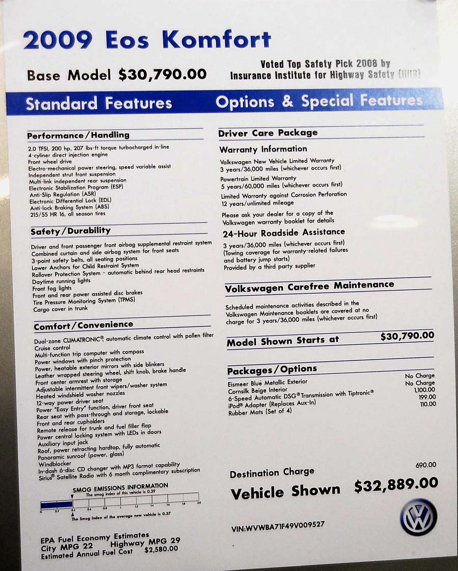Volkswagen Eos Komfort 2009