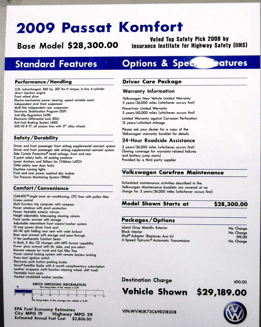 Volkswagen Passat Komfort 2009