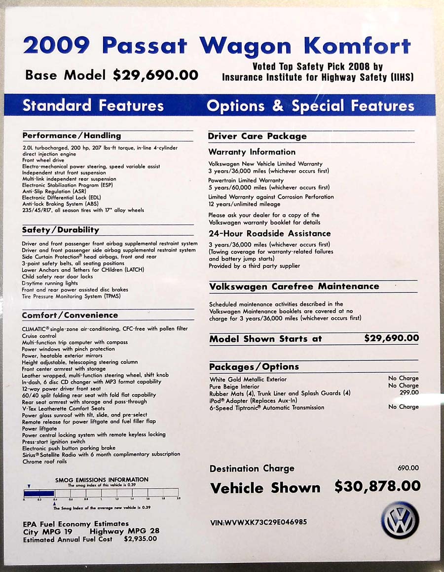 Volkswagen Passat Wagon Komfort 2009