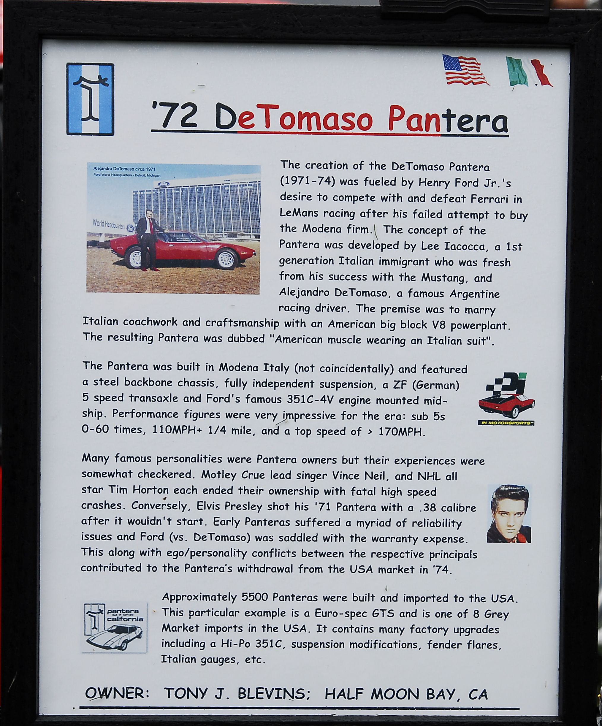 DeTomaso Pantera 1972 Descriptive Poster For This Car - JPG file |
