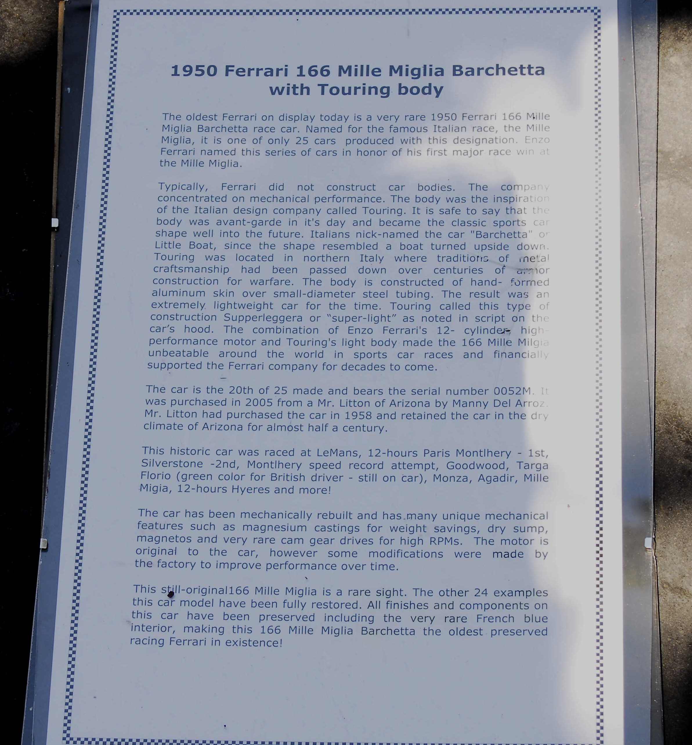 Ferrari 166 Mille Miglia Barchetta Touring sn-0052M 1950 Photos and Stories.