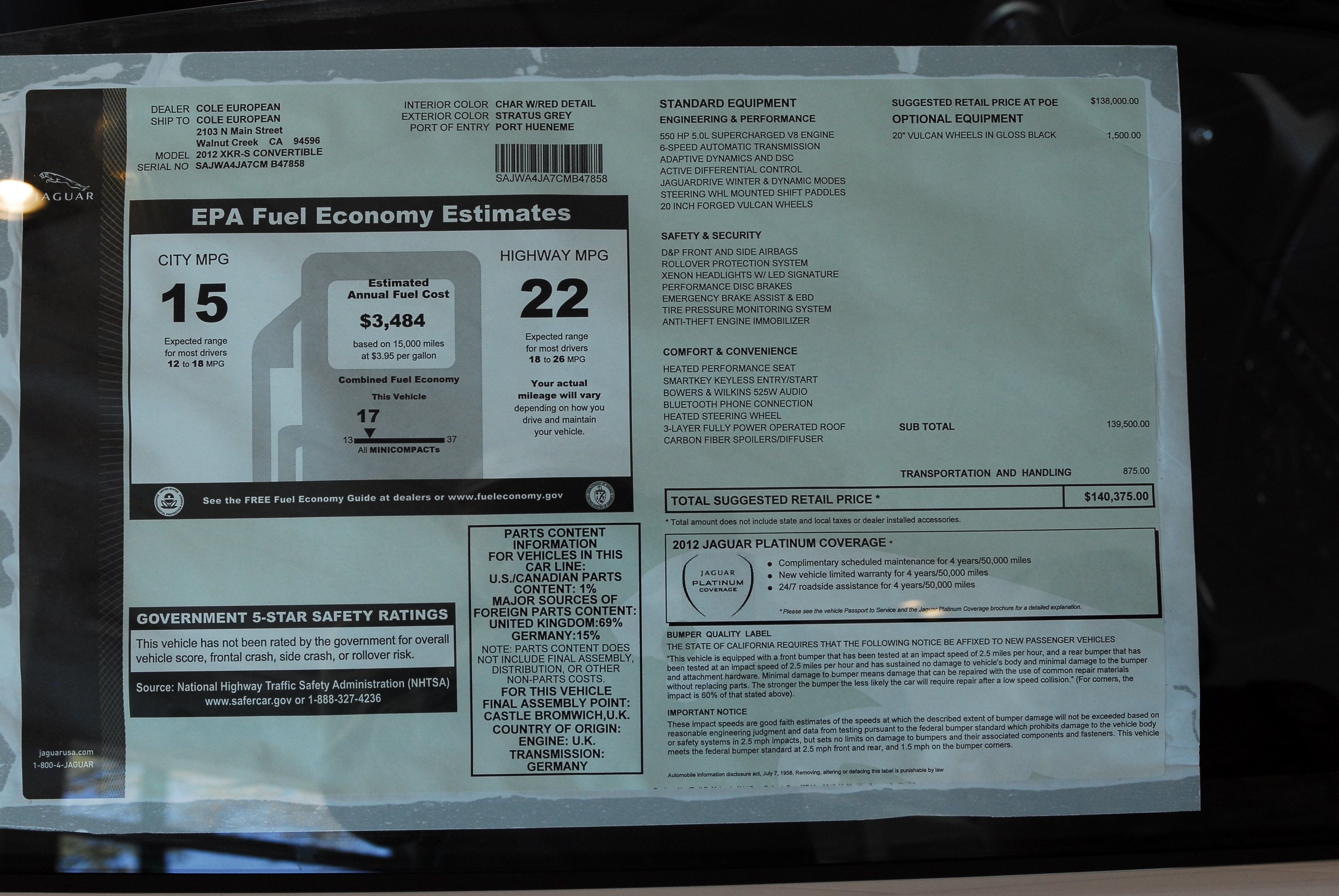 Jaguar XKR-S sn-SAJWA4JA7CMB47858 2012