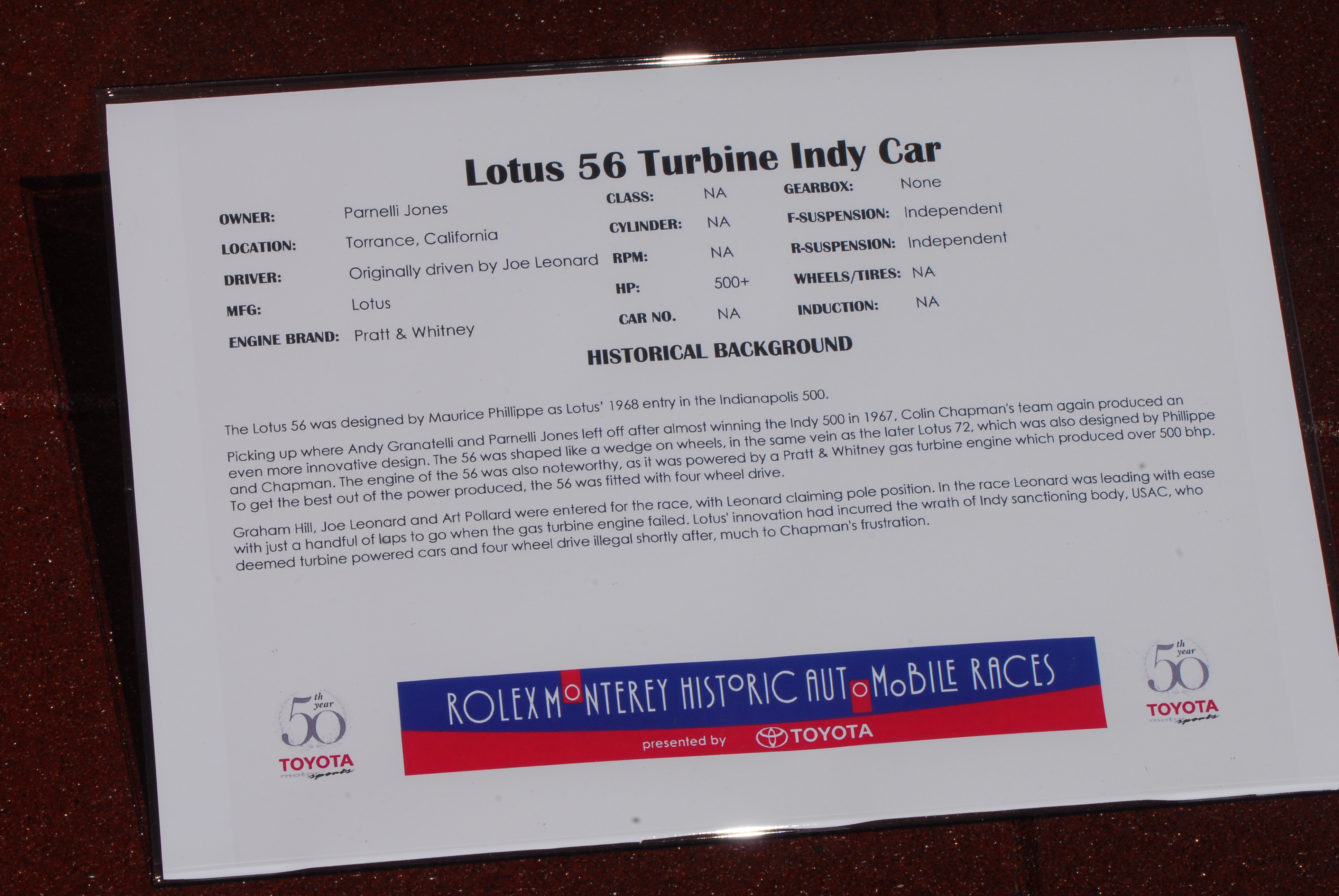 Lotus 56 Turbine Indy Car 1968 INDY CARS Monterey Historic Automobile Races 2007